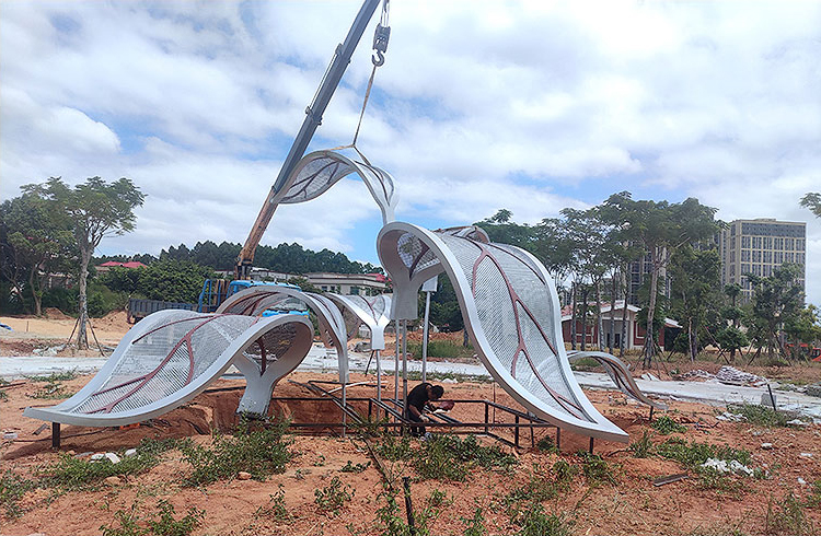 本文探討了不銹鋼抽象船帆作為一種景觀藝術形式的應用。不銹鋼雕塑的材料選擇和型號對于其質量起到了很大的影響。廣場是不銹鋼抽象船帆的適宜安放之地,在公共環(huán)境中,不銹鋼雕塑不僅是人們與藝術之間的交流媒介,也承載著社會意義。隨著城市不銹鋼雕塑的逐年增加,廣場不銹鋼抽象船帆成為較為常見的形式之一。本文介紹了適宜尺寸和使用材料,并進行了包裝和運輸的建議。